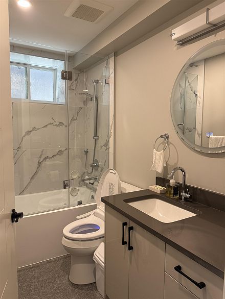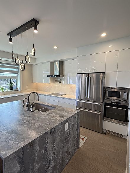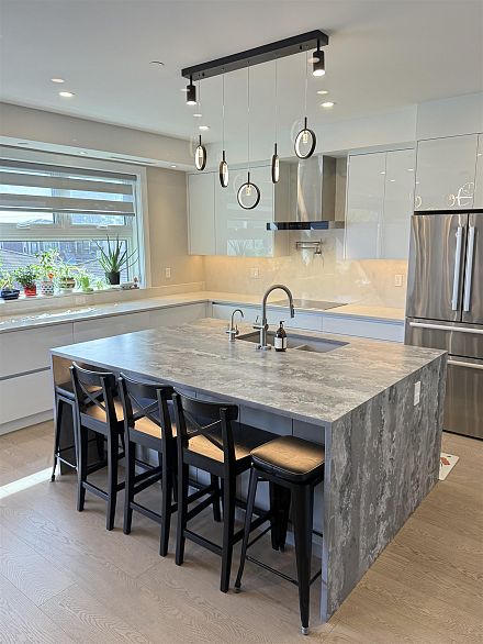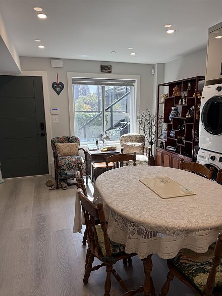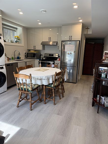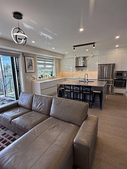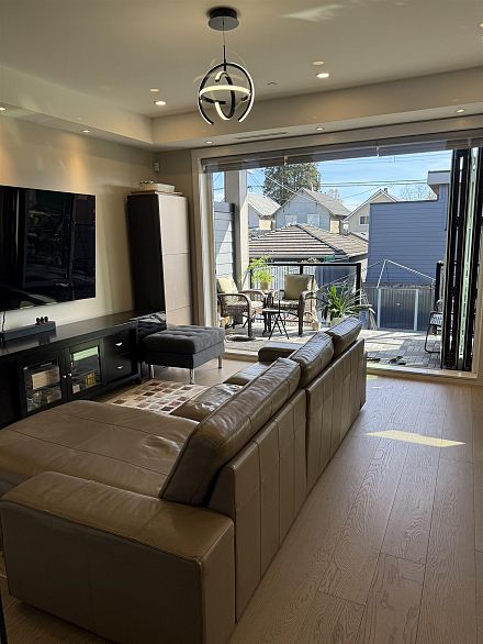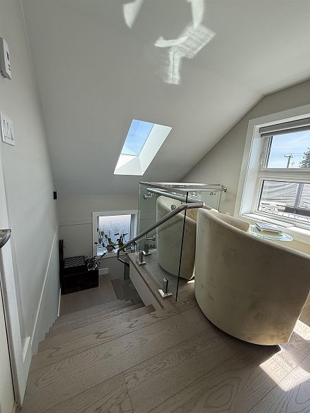 A custom-built home designed for spacious living. Features include a chef's kitchen with high-end appliances, hot/cold instant water on demand, 2 pot fillers, an oversized island, wok kitchen, all Blanco kitchen sinks, skylight, air conditioning, HRV system, radiant in-floor heating throughout. Engineered oak flooring, custom cabinetry, an accordion-style patio door with remote-controlled blinds, and an open, light-filled staircase enhanced by natural light. Enjoy outdoor living on the impressive 540 sq. ft. semi wraparound rooftop deck with amazing views. The lower level includes a legal 2-bedroom suite. A separate 2-bedroom laneway house with hot water radiant heating ,bedroom balcony and a staircase with high open ceilings Garage with EV charger, service parking next to laneway.